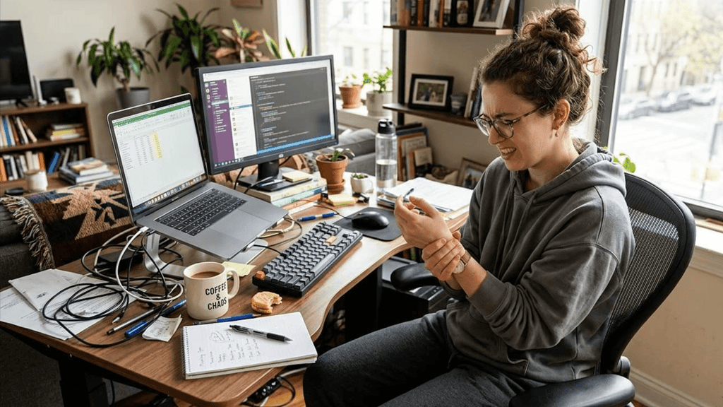 Translation: companies want more speed, more efficiency, more output, more “let’s leverage AI,” and somehow also expect the human body to remain a silent background prop. That means more repetitive tasks, more reviews, more context-switching, more pressure, and more time living inside a posture your chiropractor would describe as criminal.