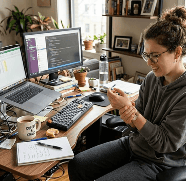 Say you're a software engineer, product manager, designer, analyst, or copywriter working ten-hour screen days, bouncing between Jira, email, chat, AI tools, docs, and video calls. Over time, you develop neck pain, back pain, tendon inflammation, or hand and forearm issues.