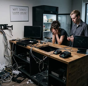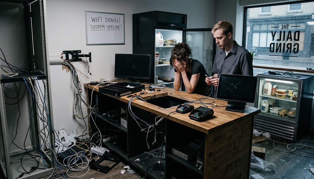 Just source the hardware, confirm compatibility, order parts, wait for shipping, schedule electricians, restore connectivity, reconfigure software, reauthorize payment devices, reinstall cameras, test everything, explain delays to customers, deal with spoiled goods, answer staff questions, document the loss, and somehow continue acting cheerful on Zoom.
